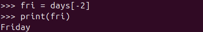 You can also access elements from the end of the list using negative indexes. -1 refers to the last element, -2 the second-to-last, and so on: