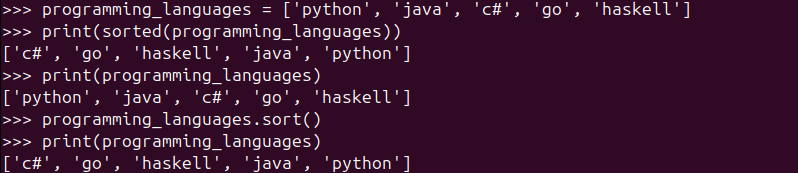 programming_languages.reverse() # ['haskell', 'go', 'c#', 'java', 'python']